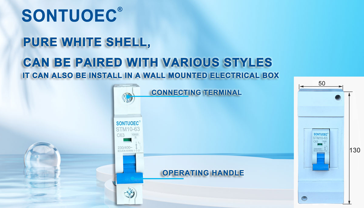 SONTUOEC ke e mong oa bafani ba Machaena / bahlahisi ba sebetsanang le tlhahiso ea lisebelisoa tse sa tšoaneng tsa motlakase tse nyenyane tsa STM10-63 Series high breaking miniature circuit breaker e na le likarolo tsa sebopeho se tsoetseng pele, ts'ebetso e ka tšeptjoang, ho senya matla a holimo, ponahalo e ntle 'me khetla ea eona le likarolo li entsoe ka thepa e nang le ts'oaetso, tšobotsi e matla e thibelang mollo. E loketse tsamaiso ea matla ea maqhubu a 50 kapa 60, Ue 400V le ka tlase, Ui 63A le ka tlase. E sebelisoa haholo-holo mohahong oa liofisi, bolulo, bakeng sa mabone, kabo ea matla le ho feta le tšireletso ea potoloho e khutšoanyane ea lisebelisoa. Ka tloaelo, e ka sebelisoa hape e le phetisetso e sa feteng khafetsa ea sistimi ea motlakase. E lumellana le litekanyetso tsa IEC60898.1 le GB10963.1